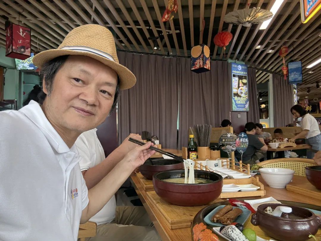 轉進“滇滿樓”,滿牆的榮譽證書在燈下泛著檀木光澤。九十八元的過橋米線端上時,小橋般的配料橫渡青花大碗公,熟食如彩貝綴於浪尖。湯氣蒸騰間,多年前東盟論壇後那場米線夜宵驀然浮現——十指不沾陽春水,為君熬盡骨湯濃。這白玉細絲何止是舌尖之橋?分明是情義的舟楫,在歲月長河擺渡著相逢的重量。