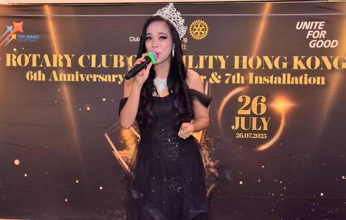 (中華新聞通訊社/中華時報7月28日訊)2025年7月26日,在尖沙咀富豪酒店隆重舉行的香港精英扶輪社七周年慶典上,第28屆香港環球夫人大賽網路紅人冠軍得主文霞(小龍女)女士驚豔亮相,不僅以動人歌喉為盛會獻唱助興,更肩負重任擔任籌款嘉賓,以實際行動詮釋其明星慈善家的理想追求,成為當晚最耀眼的焦點之一。