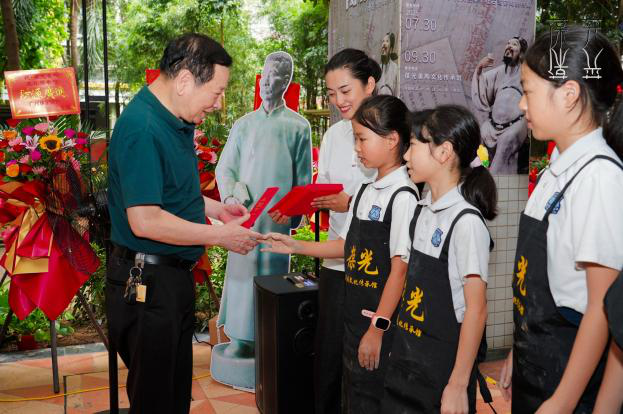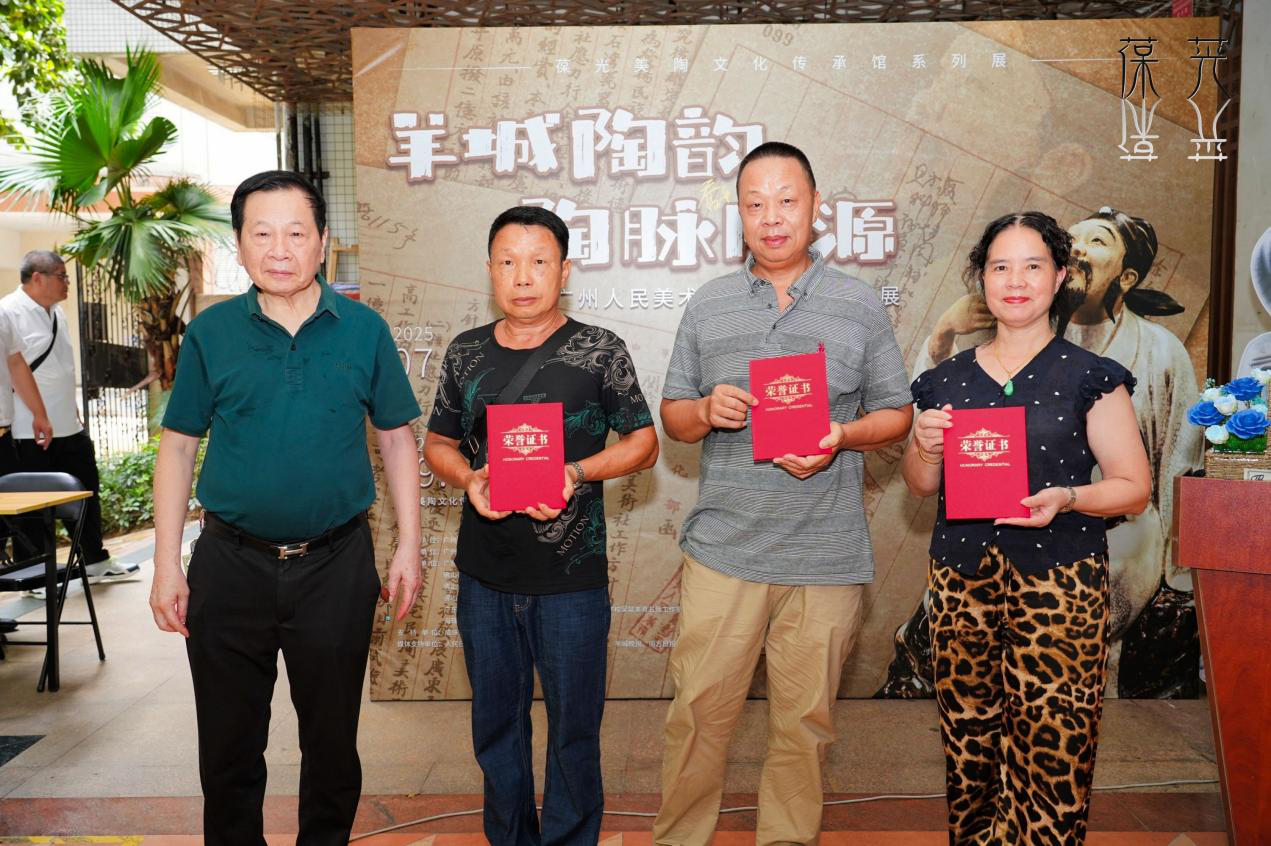 活動現場還舉行了多項授牌儀式,佛山市陶藝家協會封偉民副會長授予葆光美陶館“石灣陶塑技藝非遺傳承基地”,佛山市陶藝設計行業協會陳真秘書長授予葆光美陶館“陶藝設計共創空間站”。同時,由中國工藝美術大師潘柏林向多位參與者頒發證書,包括:向陶藝收藏家頒發《借展證書》、向廣州市財經商貿職業學校張宇老師頒發《校館合作教學成果展》證書、向廣州市財經商貿職業學校及華南師範大學附屬荔灣小學學生代表頒發《研學實踐證書》,生動體現“文化共建、全民共用”理念在陶文化傳承中的實踐成果。