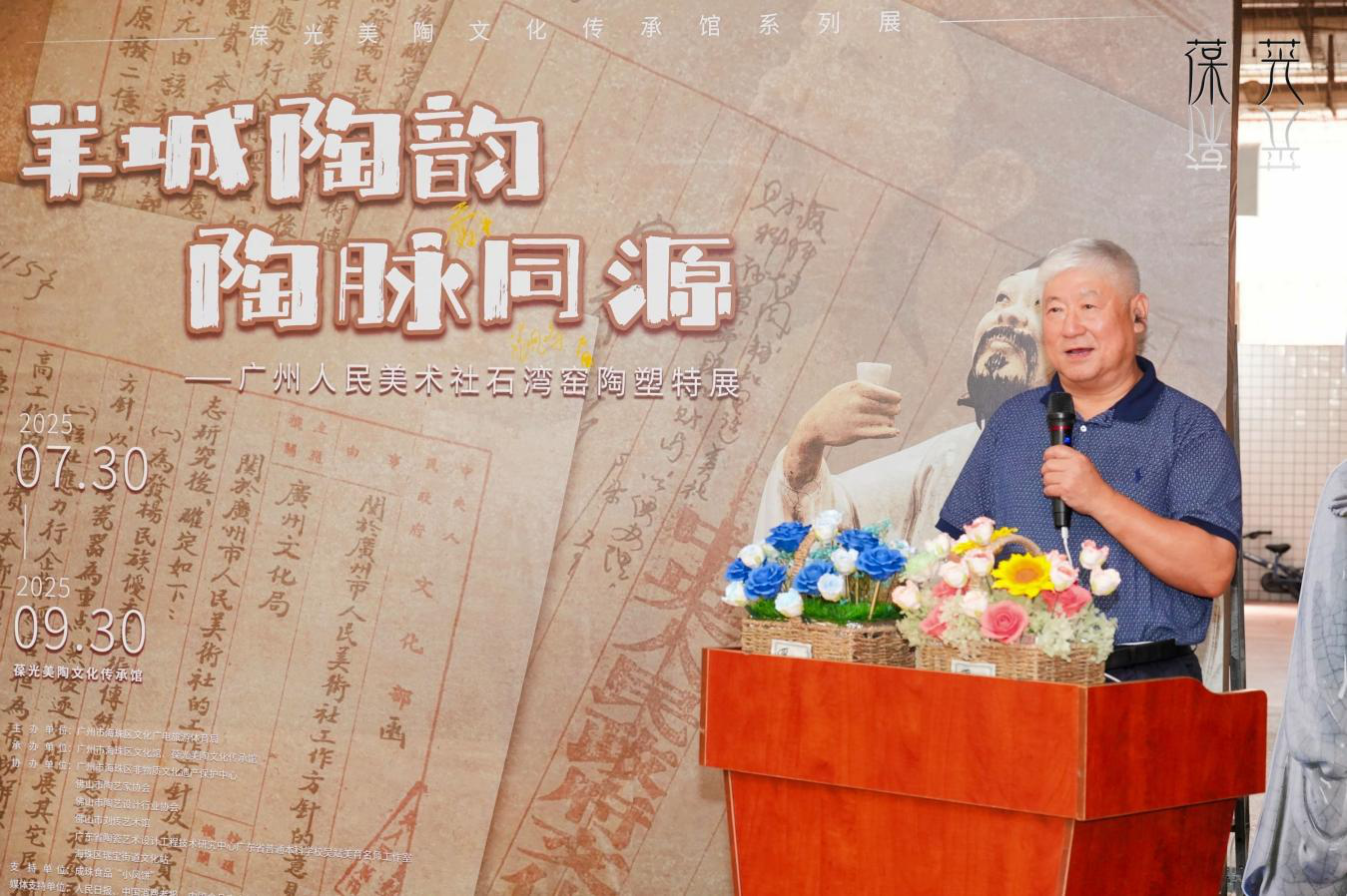 廣東省陶瓷藝術大師、劉傳之子劉桂芳在發言中,從歷史傳承的角度回顧了父親劉傳大師在新中國成立初期應廣州市長朱光之邀,主持創辦廣州人民美術社陶瓷雕刻工廠的歷史片段。他指出,該工廠作為石灣陶塑由民間工藝邁向現代藝術體系的重要平臺,彙聚了劉傳、莊稼、廖洪標等一批卓越陶藝人才,不僅保障了作品品質,也為技藝的系統傳承與推廣奠定了基礎。劉桂芳衷心感謝眾多藏家熱情支持此次徵集工作,提供珍貴展品,使本次展覽得以完整呈現20世紀中期石灣陶藝的藝術風貌。他強調,石灣陶塑的輝煌成就不僅是個體藝術家的榮譽,更是嶺南陶藝界乃至中國現代陶瓷藝術的集體記憶與文化榮耀。
