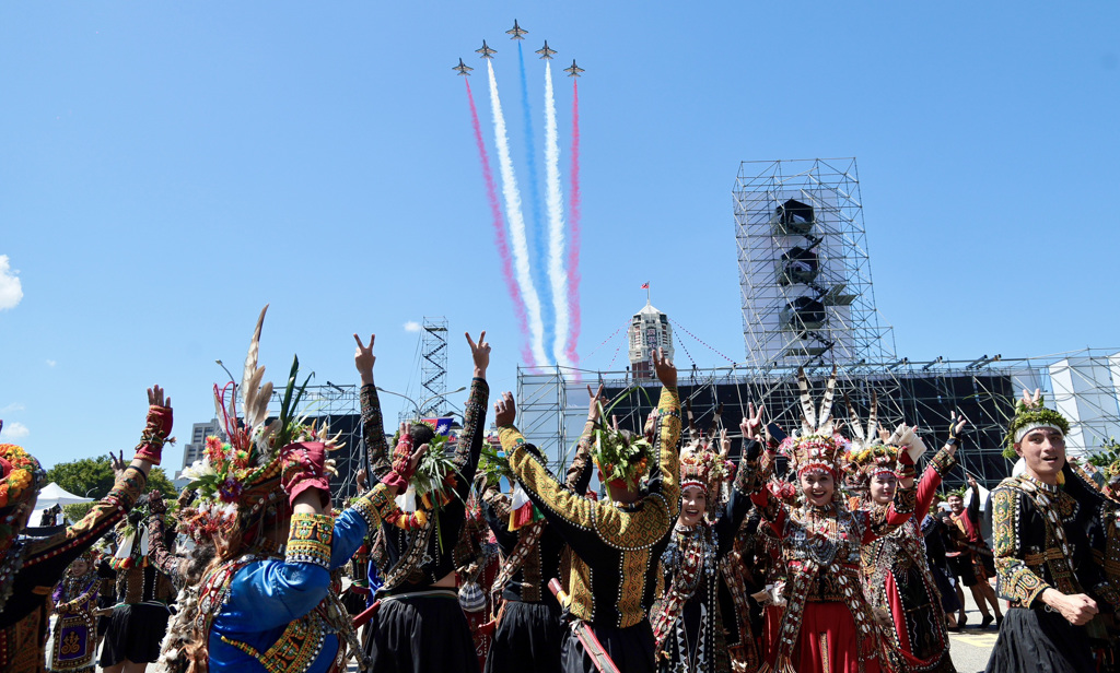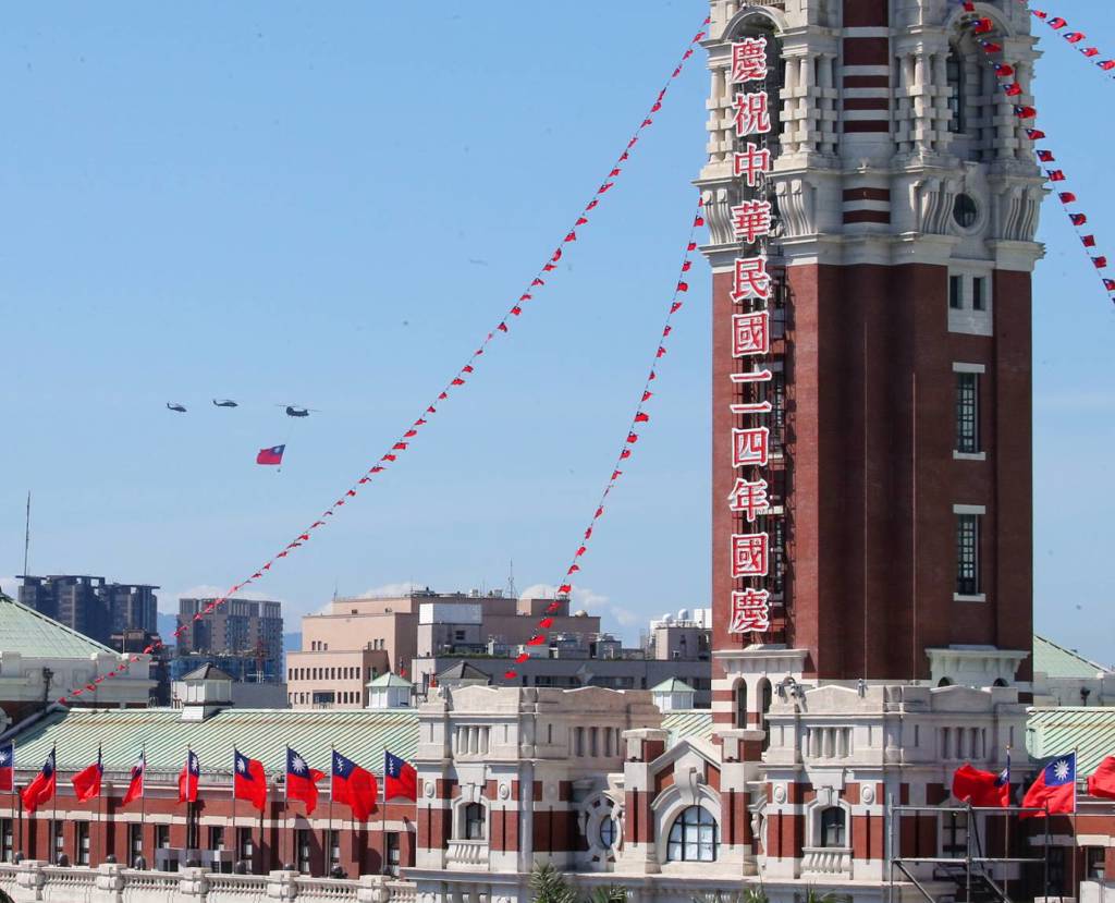 今年國慶大會今天上午在總統府前廣場登場,分為序幕暖場、國慶大會、主題表演等3階段。國慶大會在上午11時許,總統賴清德發表完國慶演說,高喊「台灣加油,中華民國加油,中華民國台灣加油」後,進入主題表演階段。