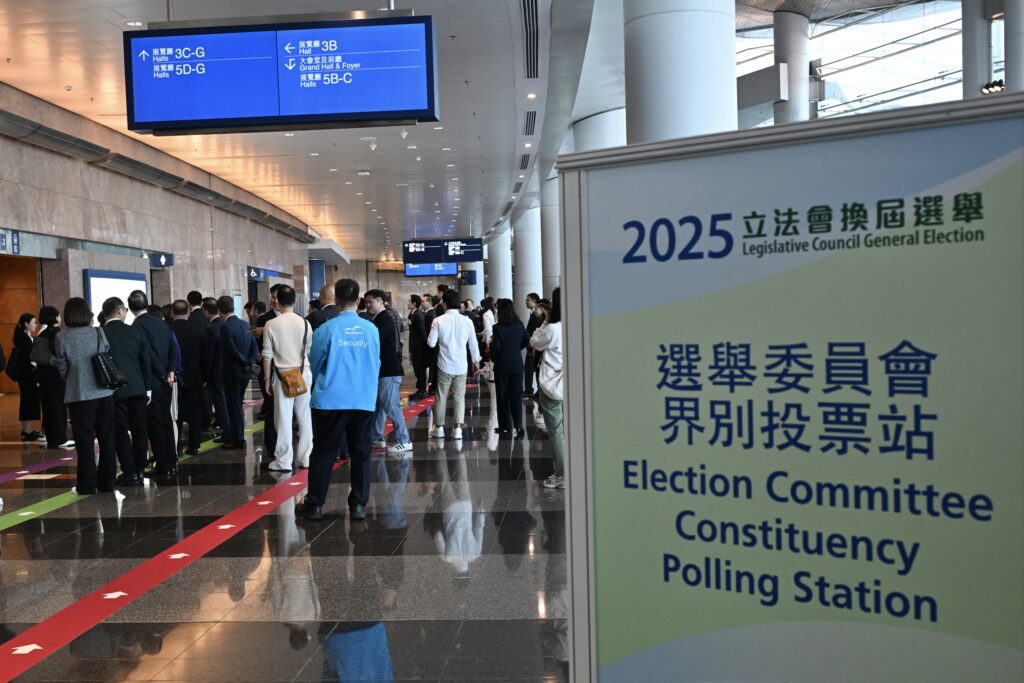 12月7日,香港特区第八届立法会选举进行投票。香港特区选举委员会委员到设于香港会议展览中心的选举委员会界别投票站进行投票。图为选举委员会委员到投票站投票。 中新社记者 李志华 摄
