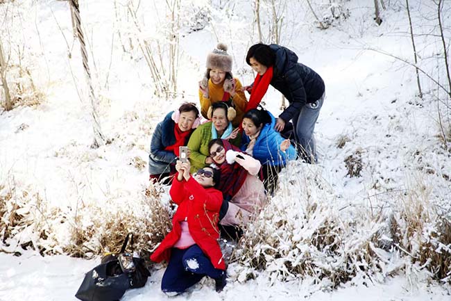 作品說明:朔風裹雪漫拂街巷,七位身影綻於素白天地間。前排女子半跪手機輕輕舉起,將身後夥伴們的笑靨與雀躍一一收納。或抬頭微笑,或側身相倚,或揚臉迎雪,各樣姿態揉碎了冬日的清寒。快門輕響時,凜風也似添了溫軟。這幀樓上俯拍的畫面,無關宏大景致,只將一群人的歡悅定格,任雪落肩頭,任情誼在寒野裏悄然生長,鮮活又明亮。