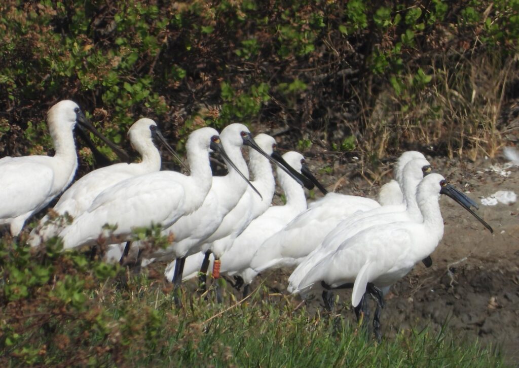 近日,多只黑臉琵鷺亮相廣東海豐鳥類省級自然保護區。(廣東省林業局 供圖)