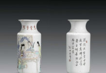 回到高心田的這件淺絳彩人物帽筒,“登仁壽域”作為銘文出現,具有了獨特的藝術與社會功能: