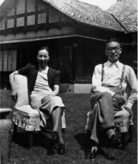 冰心、吳文藻在日本住宅前合影(1947年)。(資料相)