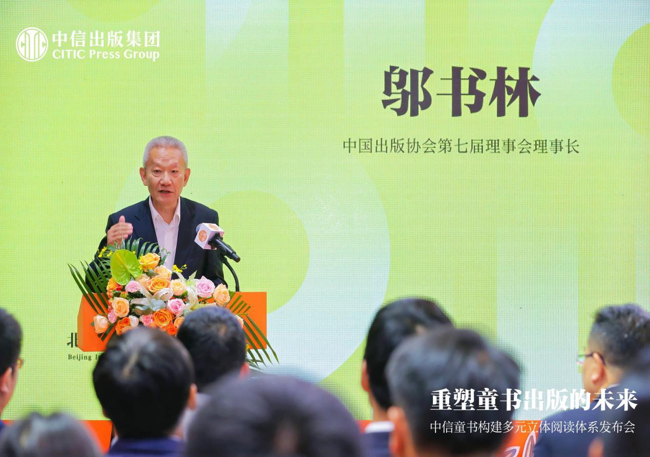 鄔書林在活動致辭中充分肯定了中信出版少兒文化集團近些年對中國少兒圖書發展的貢獻,對中信童書的成果表示祝賀。他表示,中信出版童書業務是中國童書的重要力量,繼承了中信出版集團改革創新的優秀基因,緊跟世界出版業發展變革潮流趨勢,以科學技術手段賦能業務發展,不斷為行業改革發展帶來創新理念。中國出版協會審時度勢,適時將中信出版少兒文化集團納入中國出版協會少年兒童讀物工作委員會,為少兒工作委員會吸收新鮮血液,體現了童書行業對中信出版少兒文化集團的認可。他指出,中信出版少兒文化集團提出的構建多元知識解決方案,打通了各年齡階段閱讀分級,再次為行業注入了全新的出版理念,期待中信出版少兒文化集團用新理念、新方法,把少兒多元立體閱讀體系建設落地落實、開花結果,助力行業發展,為中國童書貢獻智慧力量。