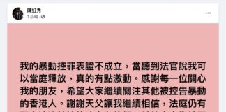 暴動罪表證不成立今被撤控 陳虹秀︰繼續堅持才有希...