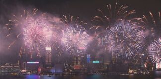 煙花維港上空綻放 呈現8字金元寶等圖案