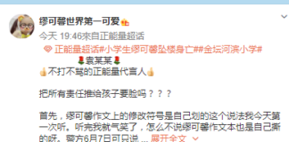 江苏一名五年级小学生坠亡引发“正能量”讨论