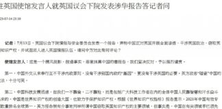 中方批評英國國會涉華報告捏造事實