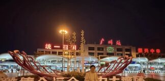 鐵柵欄圍住的廣州火車站