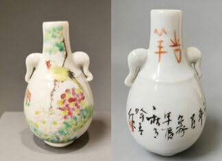 作者:程浩 高僅10厘米的喻春淺絳彩花鳥紋象鼻耳...