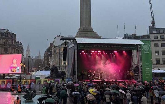 爱尔兰传统节日庆典—“圣帕特里克节”在伦敦特拉法加...