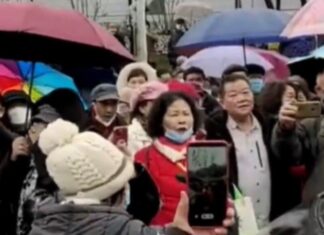 本週三(8日),武漢市上萬名退休老人冒雨聚...