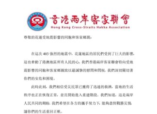香港兩岸客家聯會向花蓮受地震影響的同胞和客家鄉親慰問並發...
