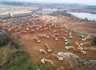 武汉版小汤山今早开建 现场上百台机械齐开挖