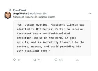 美國前總統克林頓入院治療 發言人:與新冠疫情無關