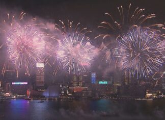 煙花維港上空綻放 呈現8字金元寶等圖案