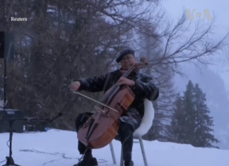 大提琴家馬友友在達沃斯舉辦以冰川為主題的演出