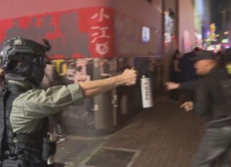 晚上有市民到旺角朗豪坊對出聚集唱歌,防暴警察到場驅散,帶走兩人,期間曾向市民施放胡椒噴劑。