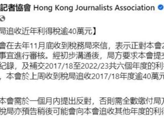香港記協被稅局追稅逾40萬