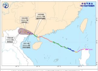 中央氣象台料泰利今晚至明日凌晨在越南北部消散 本港今日仍...