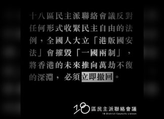 (中華新聞通訊社/中華時報訊)十八區民主派聯絡會議、380多名區議員就人大常委會將審議「港區國安法」發表聯署聲明,反對任何形式收緊民主自由的法例,認為「...