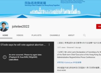 YouTube終止香港唯一行政長官候選人李...