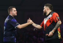 世界飞镖锦标赛第十比赛日在伦敦亚历山德拉宫...