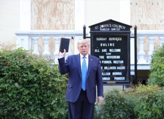 特朗普在教堂前举圣经拍照 被质疑“作秀”