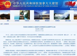 中國駐加拿大使館發言人堅決反對,並強烈譴責...