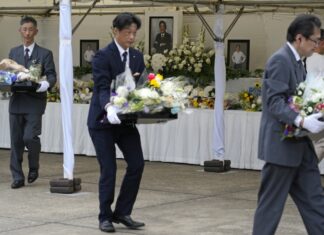 日本前首相安倍晉三私人喪禮本港時間中午在東京增上寺舉行,遺孀安倍昭惠,首相岸田文雄等出席。