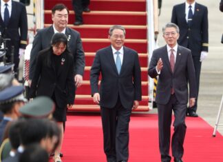李強抵首爾出席睽違4年多的第9次中日韓領導人峰會,聯合聲...