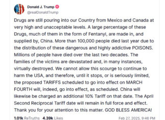 川普:對中國再加徵10%關稅 加拿大墨西哥25%關稅3/...
