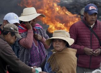 玻利维亚埃尔奥托市的一家炼油厂前,前总统莫拉莱斯的...