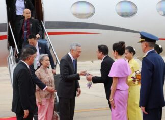 新加坡共和国总理李显龙先生和配偶抵达曼谷