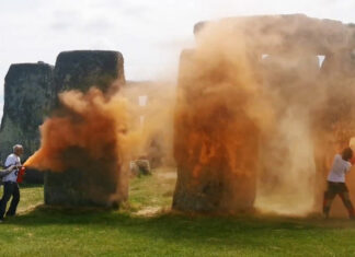 英國著名史前遺跡巨石陣遭到環保抗議者塗污 兩人被捕