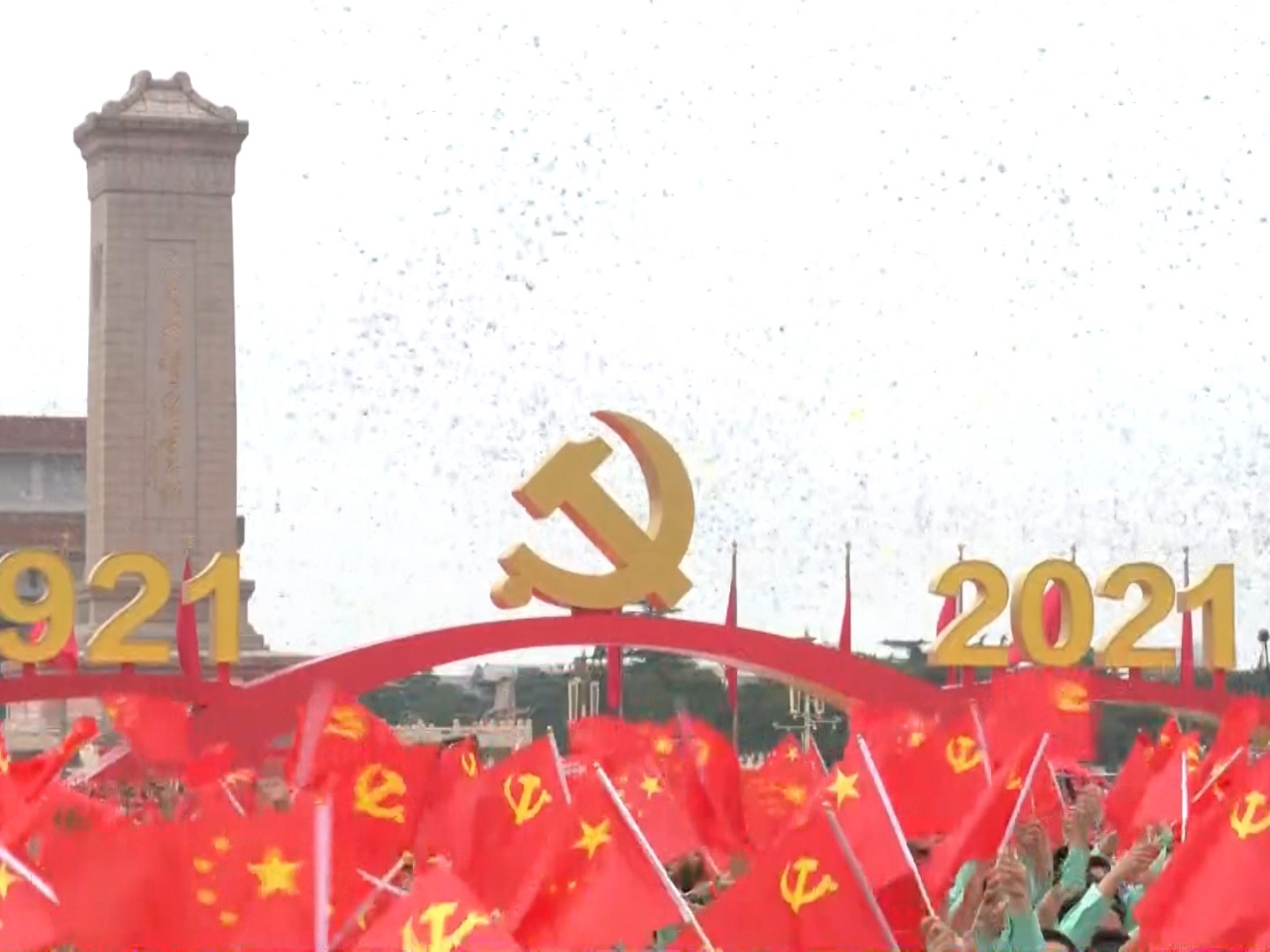 現場鳴放禮炮,習近平發表講話,表示經過全黨全國各族人民持續奮鬥,實現了第一個百年奮鬥目標,全面建成了小康社會,歷史性的解決了絕對貧困問題,向著全面建成社會主義現代化強國的第二個百年奮鬥目標邁進。