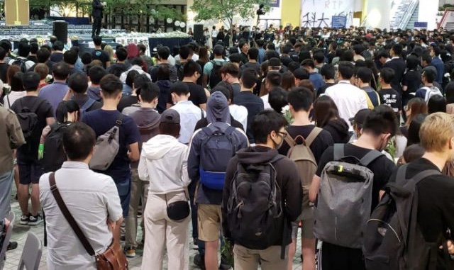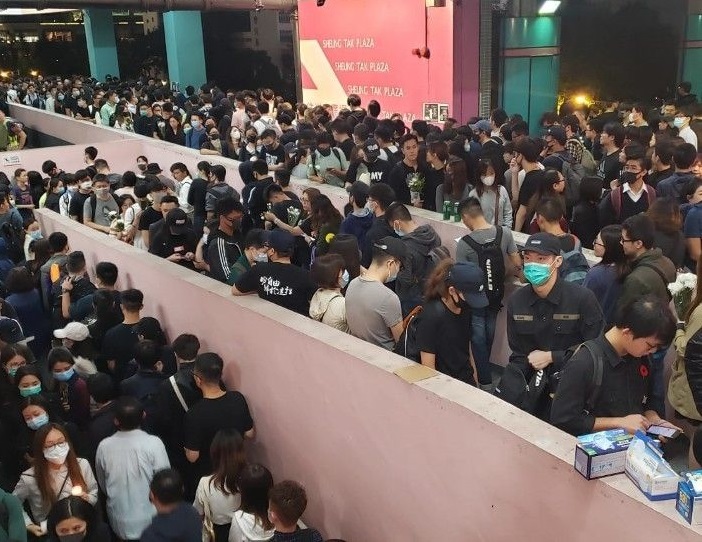 科大学生周梓乐死讯引爆全城大动乱!昨午起各区陆续有市民举行悼念活动,惟入黑后演变成示威冲突,铜锣湾、太古城、香港仔、太子、油麻地、旺角、沙田、屯门及元朗等区均有大批示威者集结,他们归咎于周的死亡与警方有关,有示威者堵路及破坏设施。其中在油麻地,有十多名便衣警员一度被大批示威者包围,警员向天开实弹枪示警以逼退示威者。另在亚皆老街近旺角街市发现一个可疑物品,警方今晨出动拆弹机械人处理。