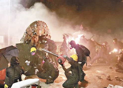 (中华时报讯)继警民冲突于周一 (11月11日) 瞬间加剧后,暴力冲突周二 (11月12日) 持续扩散至香港金融区及数所大学校园。 其中,香港警方于周二试图进到香港中文大学的校园去追捕示威者,而数百名示威者则以各式物品建立堡垒来阻挡警方进入校园,双方在进入香港中文大学校园的天桥展开对峙。