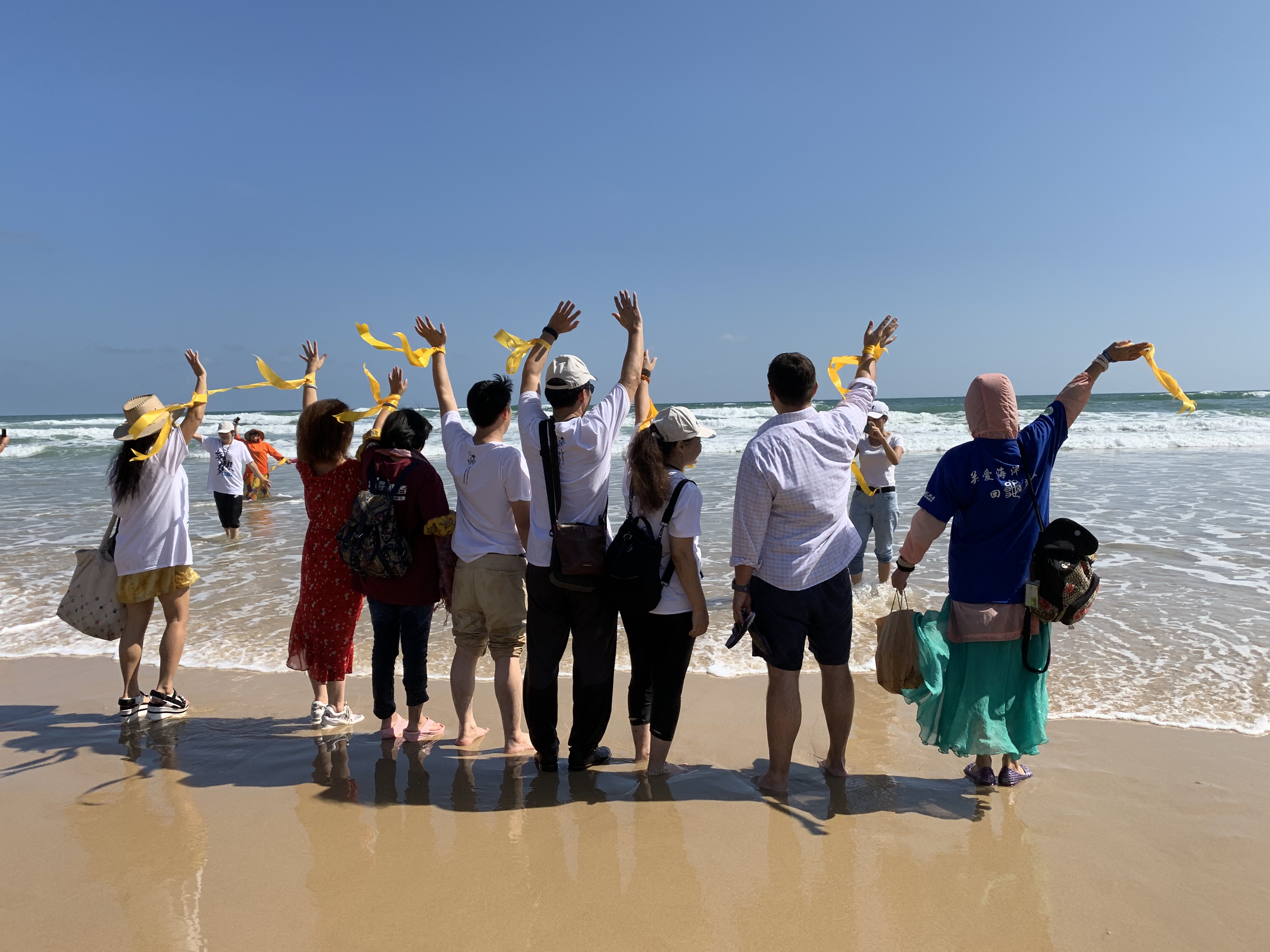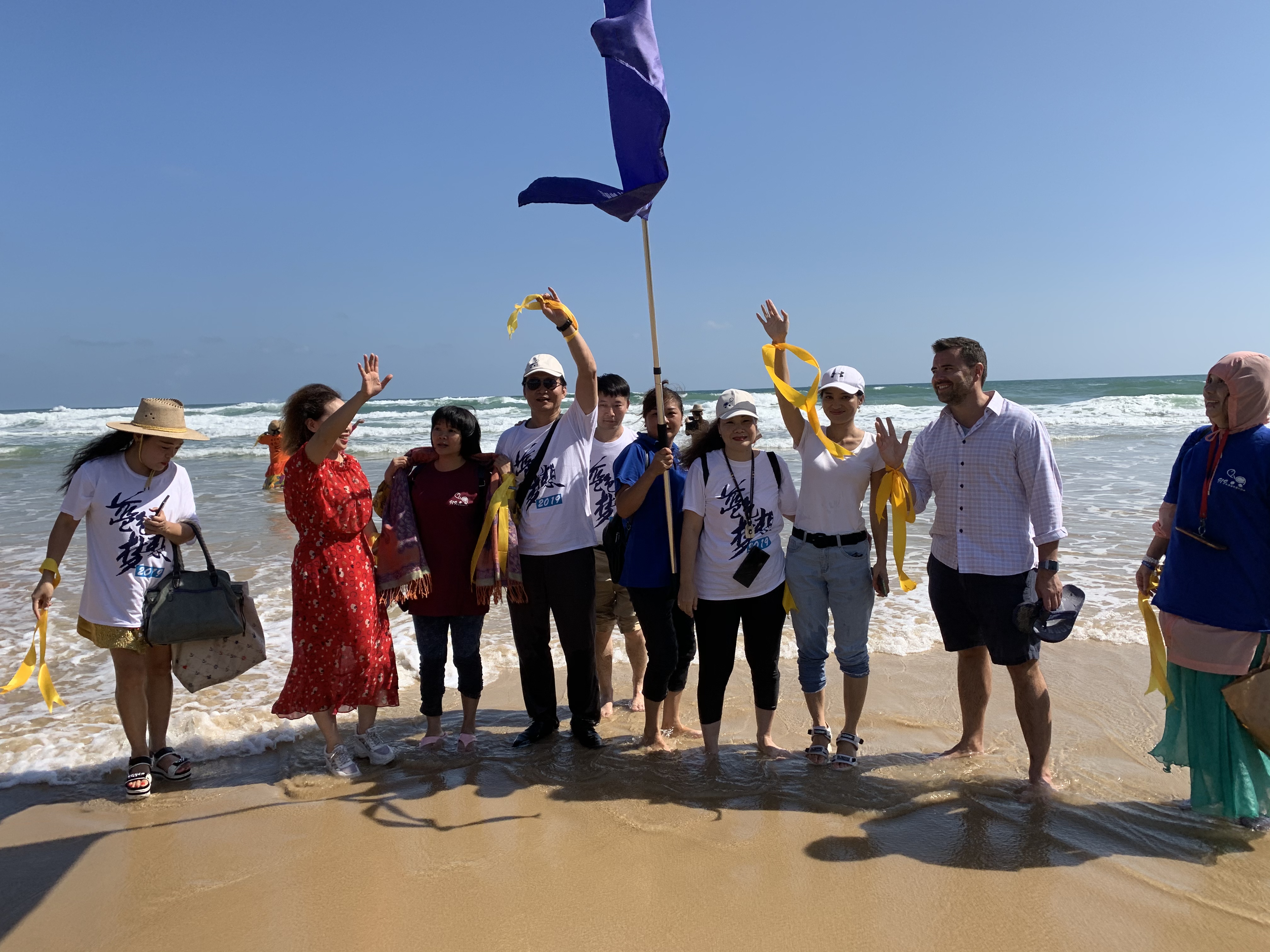 当天的活动现场,中华时报传媒集团主席、香港中文大学教授、粤港澳艺术联合会主席曾晓辉与国际友人、留学生代表和来自北京、上海、福建、江苏、深圳等地热爱海龟的志愿者百余人参加了放龟活动。随后,众多嘉宾将黄丝带挂在“五福黄丝带吉祥揽墙”上,共同祝愿伟大的祖国繁荣富强,人民幸福安康。活动现场还有越野车展示环节,他们也是公益的践行者,在救灾抢险工作中发挥着重要的作用。