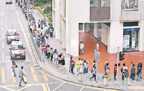 昨日不少票站大排长龙,有市民需排队两小时才能投票。