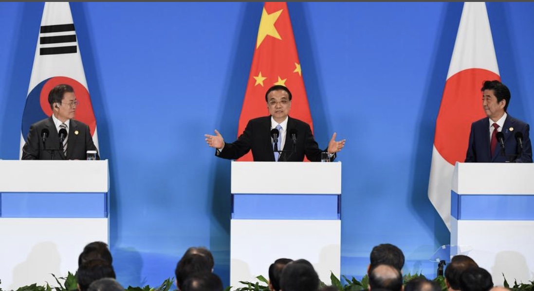 而安倍与文在寅则再次对区域全面经济伙伴关系协定(RCEP)的支持。这个贸易协定在东盟框架下提出,获得中国支持。
