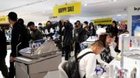 从下午起,沙田的新城市广场、铜锣湾的时代广场和旺角的朗豪坊商场等,都有戴口罩人士在商场各层聚集和游走,并不断高呼“光复香港,时代革命”、“与警暴割席“五大诉求,缺一不可”等口号。