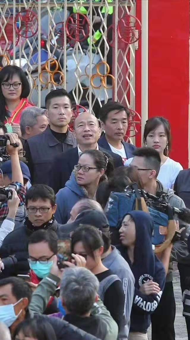 国民党候选人韩国瑜早上约8时前往台湾高雄市云林区一个设在佛寺的投票站完成投票。韩国瑜投票后走进寺内参拜,随后离开。