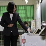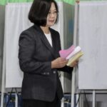 11日早上9时,台湾现任总统蔡英文现身位于户籍所在地新北市中和区的投票所,民众看见她现身,纷纷拿出手机拍照,她也跟着一般选民排队,领票后进去投票。