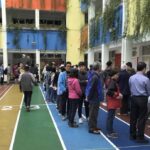 台北内湖区的西湖国中投票站早上在台北内湖区的西湖国中,投票站尚未开门已经有人在排队。因为交通方便、就业机会多,这区住着很多年轻人。不过一位大叔告诉我们,“时间太早,年轻人还未起床”。