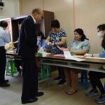 台湾著名毫芒雕刻艺术家陈逢显来到他所在的社区新北市新店区下城投票所投下了他的票,他表示,台湾民众对于选举不是很拥护,人潮不多,投票现场气氛没有想像浓厚。