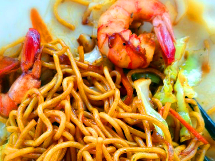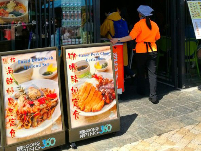 从缆车上下来抵达大屿山天坛大佛景区用午餐,这里餐饮的种类不仅多而且很实惠,例如记者一行用的海鲜炒面加太极汤,几个人下来也才不到二百元。而且海鲜炒面中的六个大虾,很人性化地从虾头以下都扒了皮,吃起来方便省事。